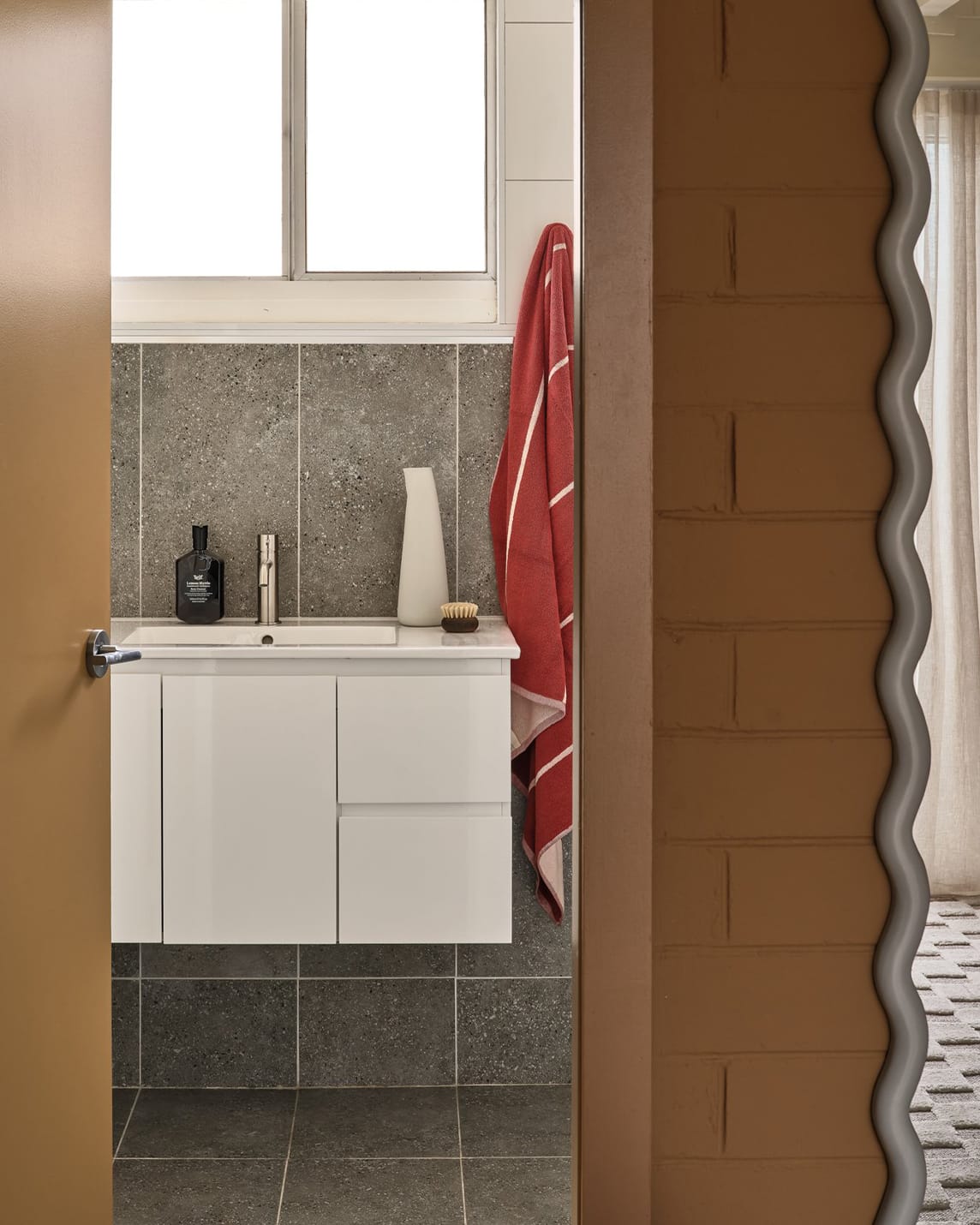 Originally created for hotels, our minimal Anthracite wall bracket securely holds a single 500mL LEIF bottle. Fabricated from marine grade 316 stainless steel, suitable for wet areas. Also available in a Brass finish.